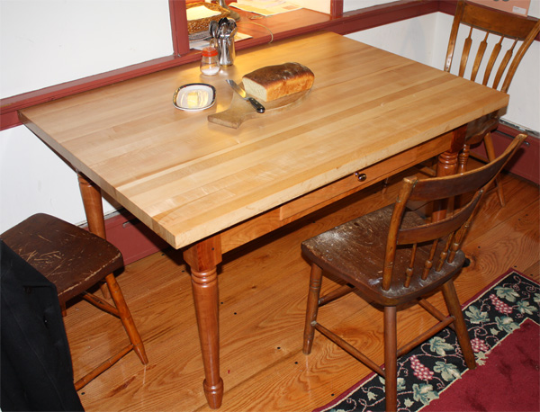 Combining style and utility to expand kitchen work area a kitchen work table doubles as a place to roll dough, make pie crusts, bread or whatever your need.