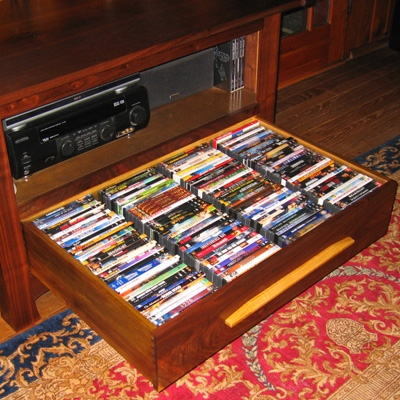 The straight lines of this table offer a warming to the room without being overpowering. The large drawer accommodates over 130 DVDs, with ease and glides on hidden undermount drawer slides.